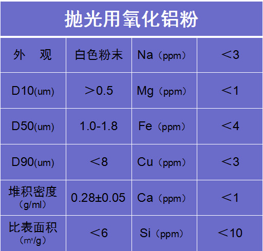 為迎合市場需求,采用獨特的生產(chǎn)工藝,利用國內(nèi)外先進的生產(chǎn)設(shè)備,通過嚴謹?shù)纳a(chǎn)流程制作而成的納米氧化鋁拋光粉為高純度白色粉末,該產(chǎn)品具有以下優(yōu)越性能: